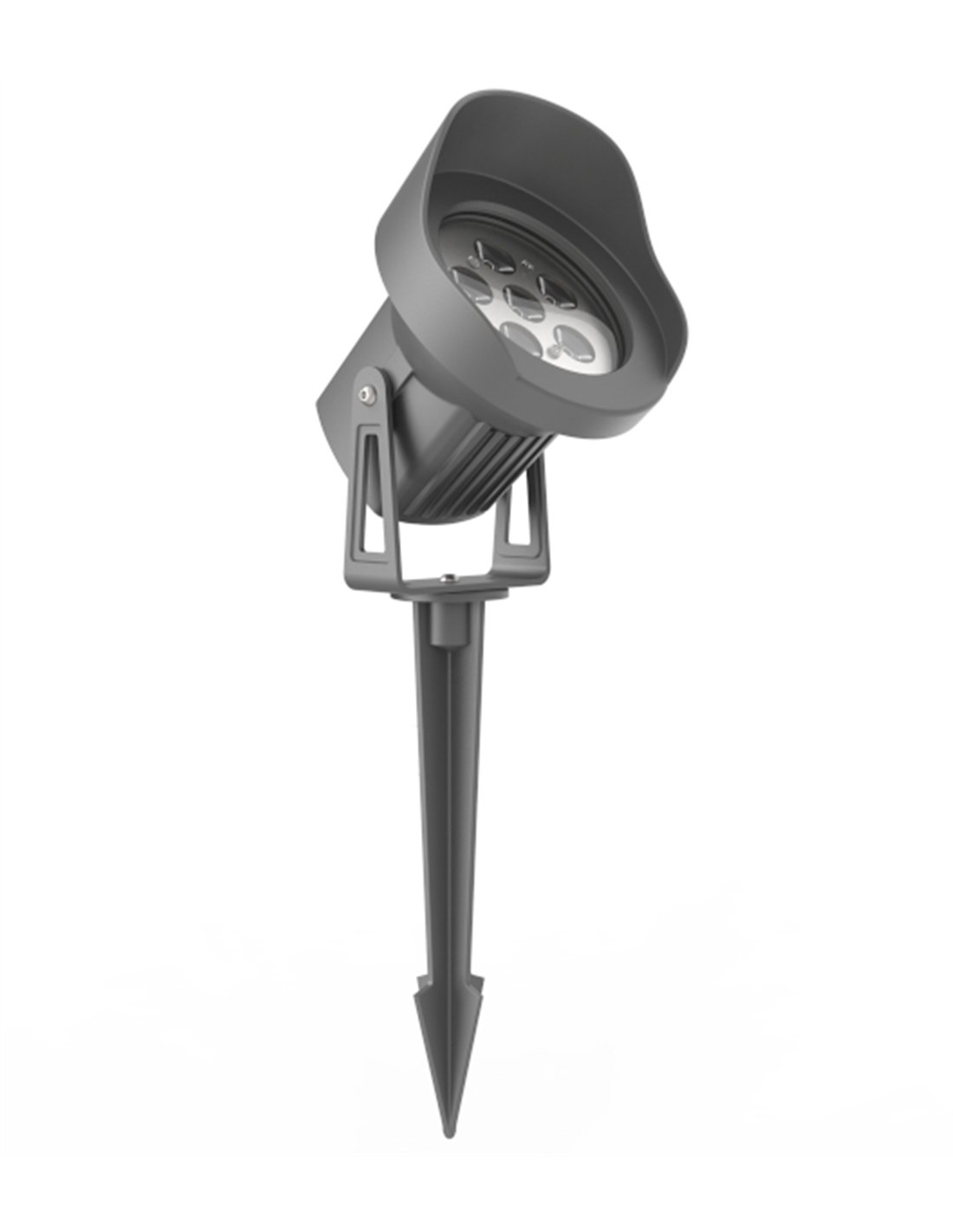 Cobra is an outdoor spike spotlight designed for direct ground installation in garden areas. The anthracite grey finish allows it to blend easily with vegetation and outdoor elements. The adjustable head makes it possible to direct the light towards plants, small trees, pathways or façade details, adjusting the illuminated point without changing the position of the spike.