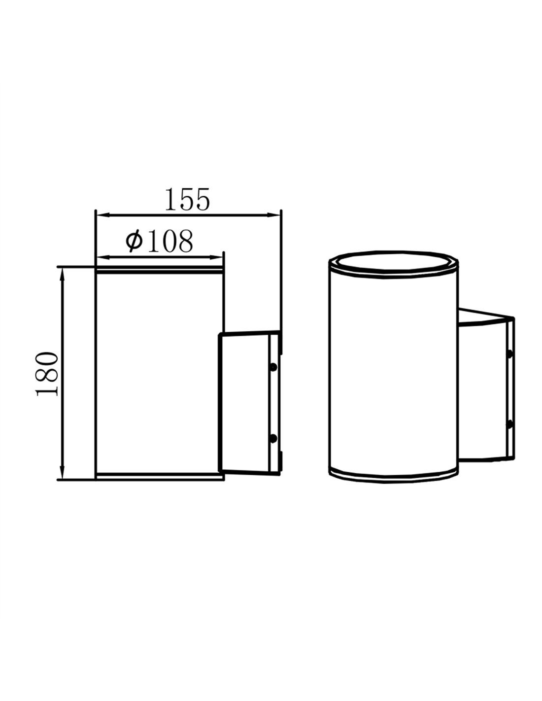 This outdoor wall light features a contemporary cylindrical design with an anthracite finish, intended to blend discreetly into modern façades. Its body is made of die-cast aluminium and includes a tempered glass diffuser that protects the light source and enables precise, well-defined light output.