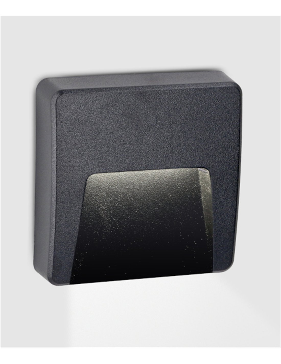 Kairo is a square-format outdoor wall light designed for marker and orientation lighting. It measures 12 × 12 cm with a 3.2 cm depth, allowing discreet integration into façades and walls. It includes three interchangeable covers in white, grey and black, making it easy to adapt the look to the surroundings.