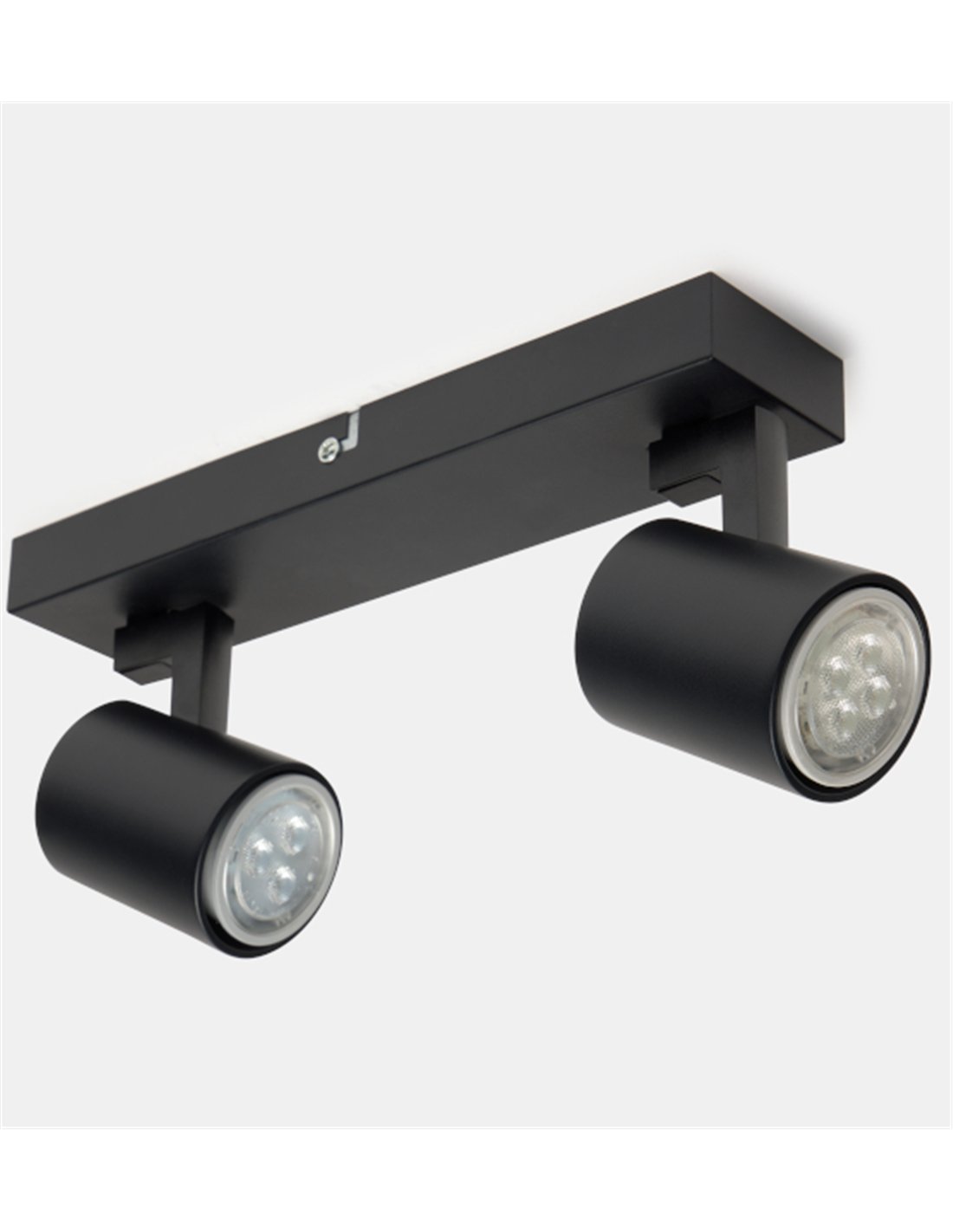 Kaplan is a surface-mounted ceiling spotlight with two adjustable light heads, designed for focused lighting and for distributing light across more than one area. It features a 26 cm long linear base with two adjustable cylindrical heads, an aluminium structure and a white or black finish. This format lets you aim each light point independently for better coverage.