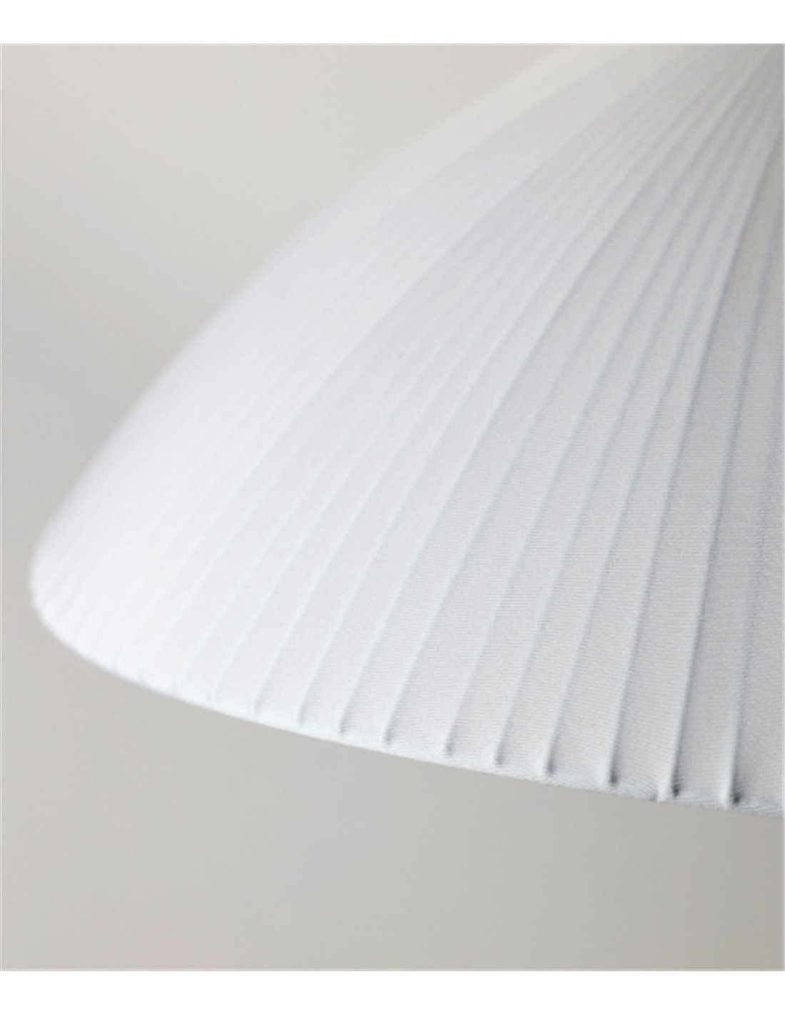 The gauze fabric has the ability to diffuse the light in an enveloping way, eliminating glare and creating a much softer and more suggestive illumination. Makonis uses an E27 bulb (maximum 40W, not included), and although the final power will depend on your choice, the textile character of its shade always guarantees comfortable, welcoming ambient light.