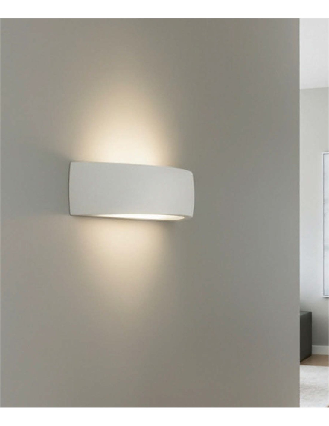 Alba is a simple yet elegant wall light that suits all kinds of interiors and rooms in the home. Thanks to its plaster body in a white finish, it offers an easy, effective way to refresh a wall with a clean, contemporary look. One of the advantages of this material is that it can be painted easily in the desired colour. It can be installed in spaces such as corridors, entrance halls or living rooms, and also works well in public areas and hospitality or hotel projects.