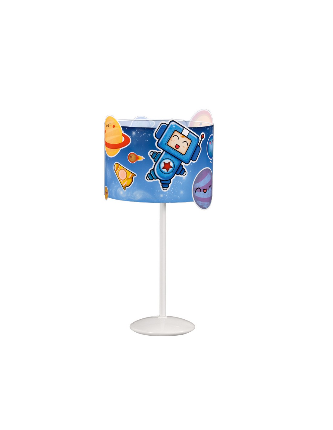 The Roky and Layla collection of lighting items consists of 4 different types of children's lamps: table, pendant, floor and ceiling. The table lamp created with metal in the stand and PVC (resistant and easy to wash) in a lampshade with fun and colorful drawings, measures 17 cm wide and 28 cm high. It requires an E-27 20W bulb that is not included with the purchase of the product.