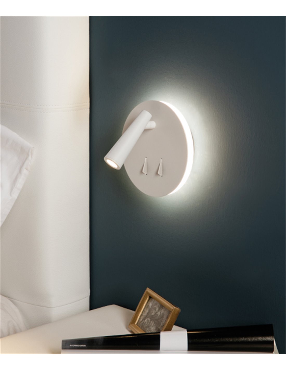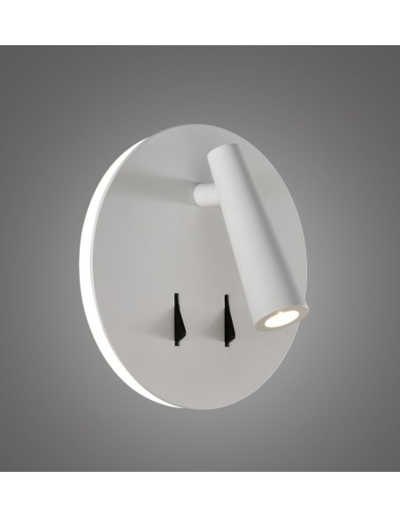 The Panau wall lamp is a highly versatile fixture thanks to its ability to emit light both from the main spotlight and around the edge of its circular base.