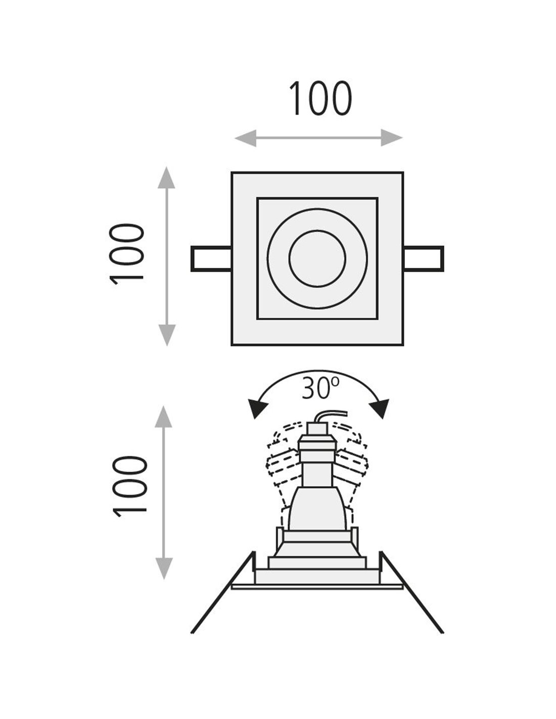 The San recessed spotlight with a single light point is the perfect choice to provide discreet lighting in any space. Its modern design, composed of a white square metal frame, adapts to both residential environments and various projects.