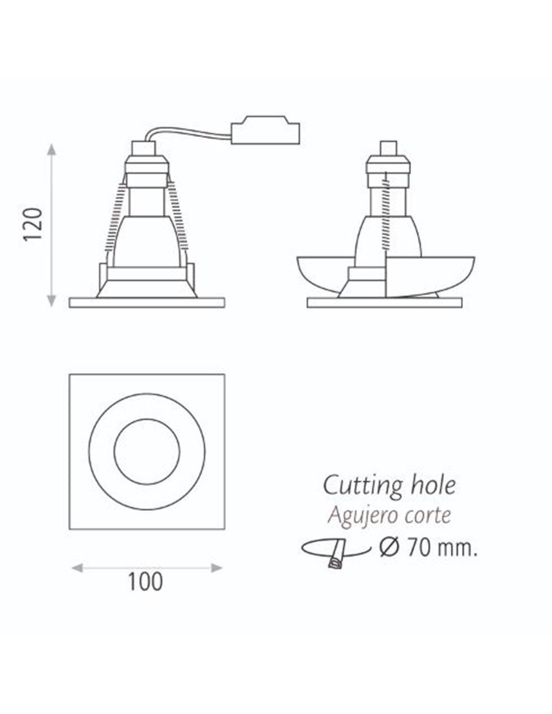 Measuring 10 cm in length and width, and 12 cm in depth, this spotlight can be used as the main light source or as an additional one in different spaces, whether in the home or in public and private establishments.