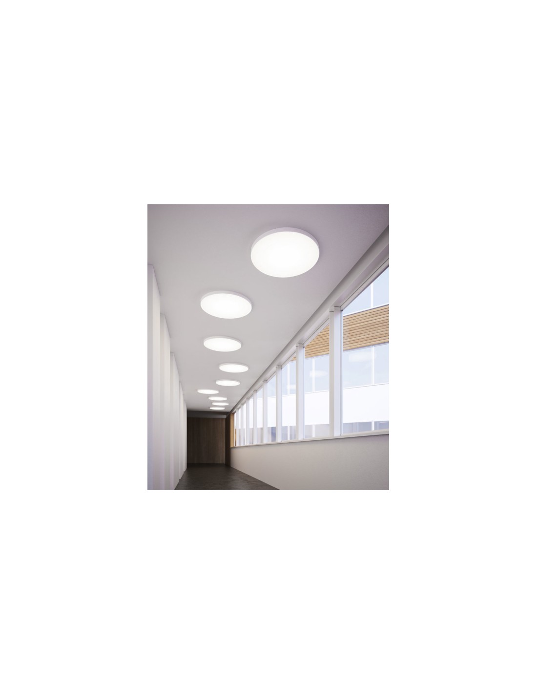Plafo offers three size options, each skillfully adapting to different needs. You can choose among its three diameters: 40 centimeters (34W, 3860 lm), 60 centimeters (75W, 8690 lm), or 80 centimeters (142W, 16400 lm). All versions come with a color temperature of 3000K, providing a warm-neutral light.