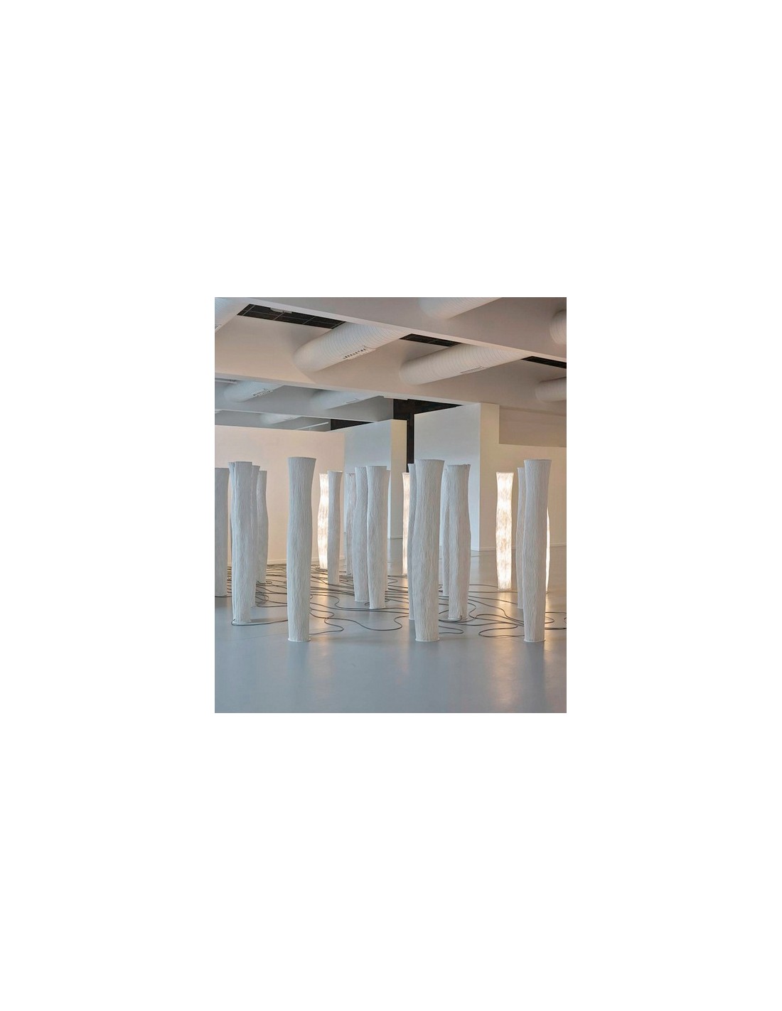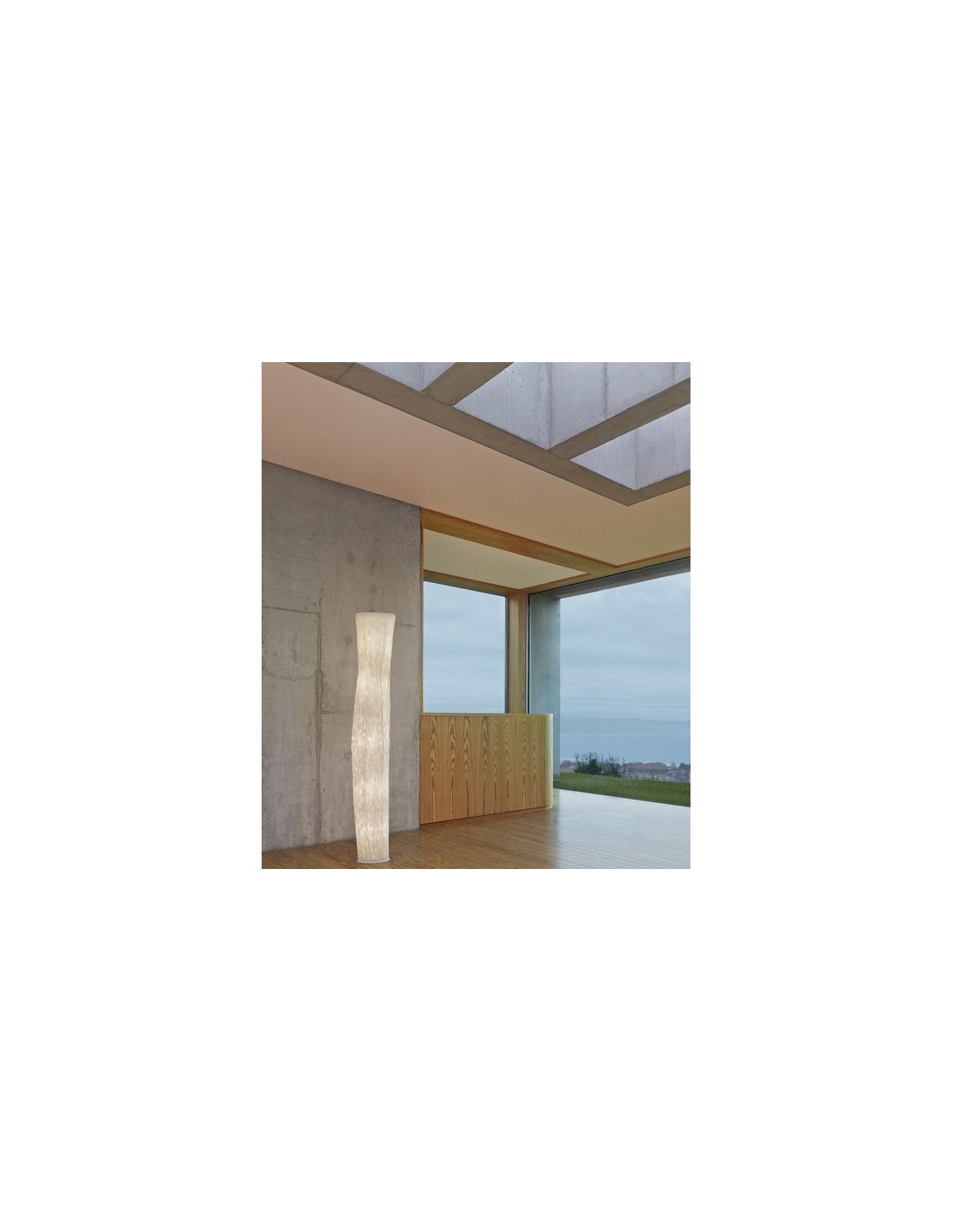 La luz de Gea se reparte de forma uniforme por toda su estructura, creando un ambiente envolvente. El nombre de esta colección está inspirado en la diosa primigenia, la madre tierra. Las estilizadas líneas de sus luminarias toman forma de las figuras femeninas, desafiando la verticalidad gracias al velo acanalado de malla de acero inoxidable pintada que se ajusta a la estructura mediante una cremallera. Esta lámpara de pie fue galardonada con el Good Design Award en 2007. Tiene un diámetro Ø 28cm y una altura de 180 cm. Su fuente de luz es LED E27 230V Max. 5x12W (no incluida) y puedes elegir su acabado: blanco, beige, gris o topo.