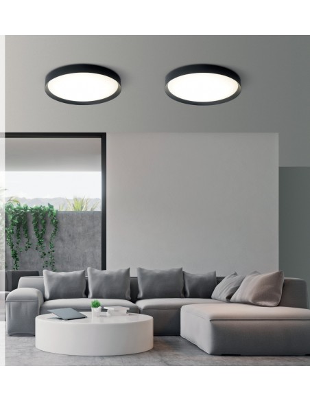 About Minsk ceiling light by ACB Lighting; round LED lamp 3000K / 4000K, available in white and black, 2 sizes: 40 / 60 cm