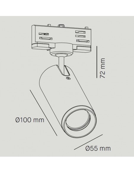 This ceiling spotlight, part of the Haul family by Milan Iluminación, is designed for three-phase track installation, allowing flexible and convenient repositioning as needed. All cylinders in the collection are crafted from extruded steel and feature a polycarbonate reflector.