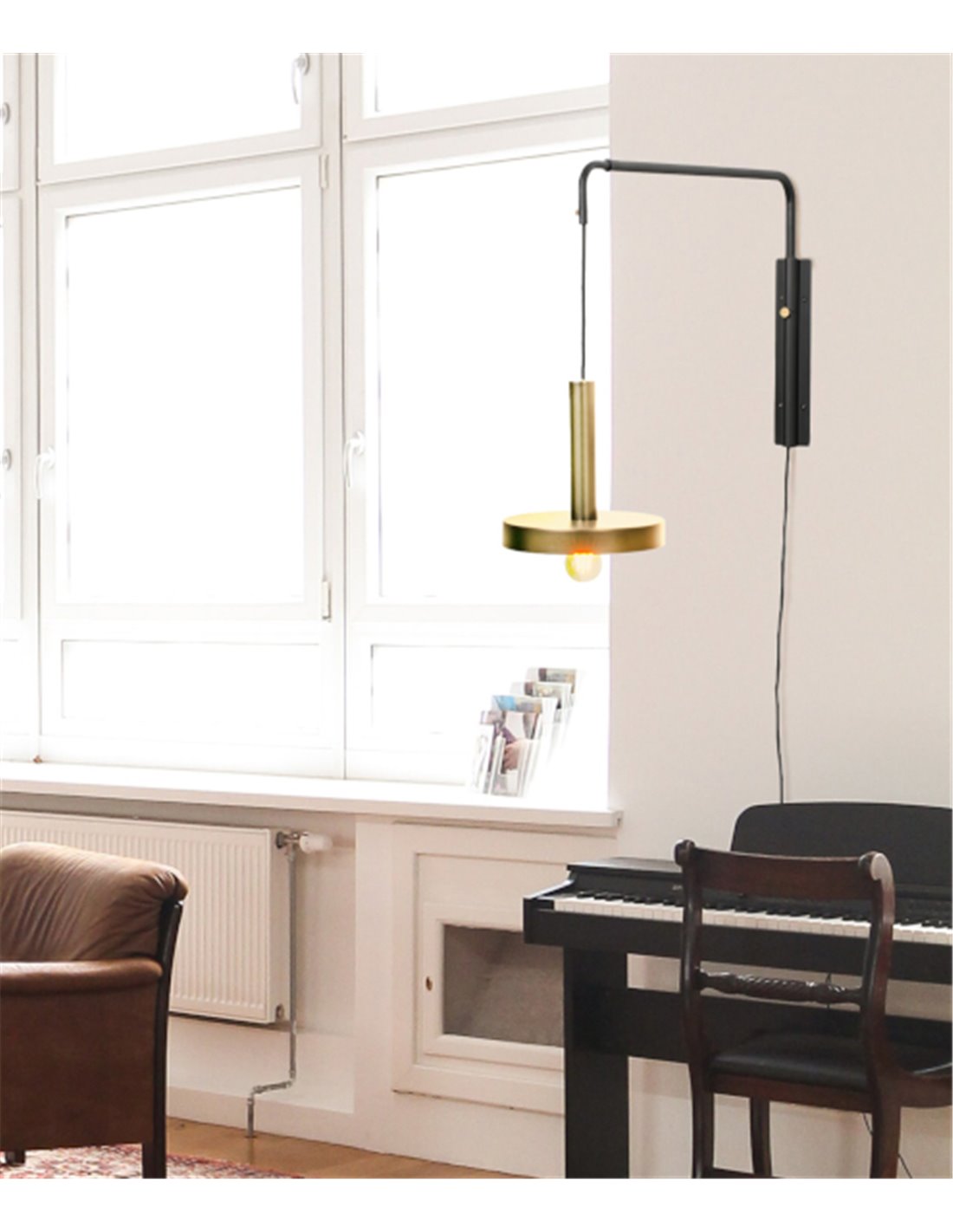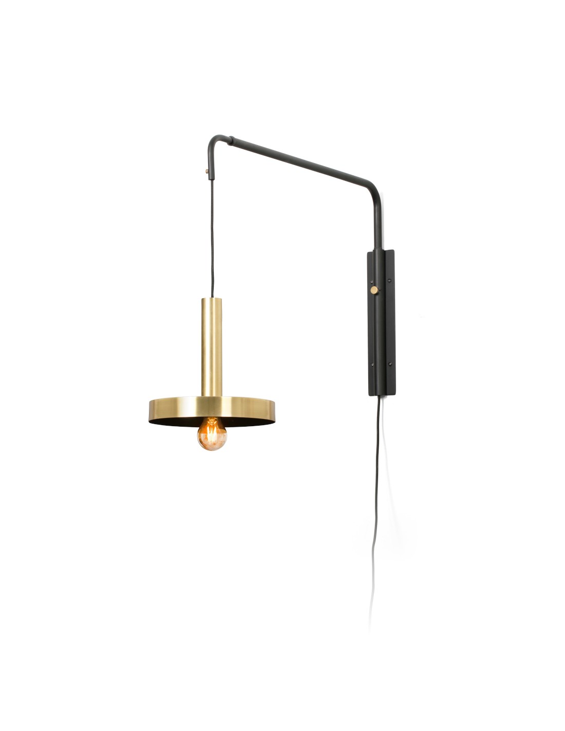About Faro's Whizz wall light; minimalist design with adjustable arm, 1xE27, available in satin gold or black
